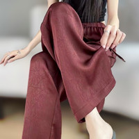 冰絲緞面闊腿褲,醋酸輕薄透氣的面料,柔軟親膚,上身舒服,高腰顯瘦,完美修飾腿型,好看百搭,不起球不褪色不變形
