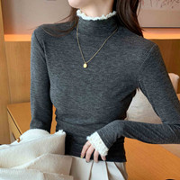 秋冬新款蕾絲拼接打底衫,舒適保暖,不起球不變形,花邊領洋氣又好看