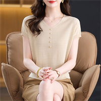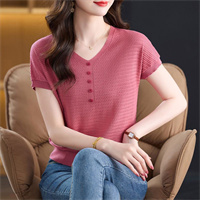 【新款】針織V領短袖衫,寬松休閑,透氣舒適不褪色,單穿內搭都適合!