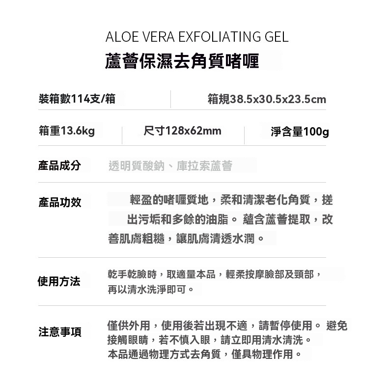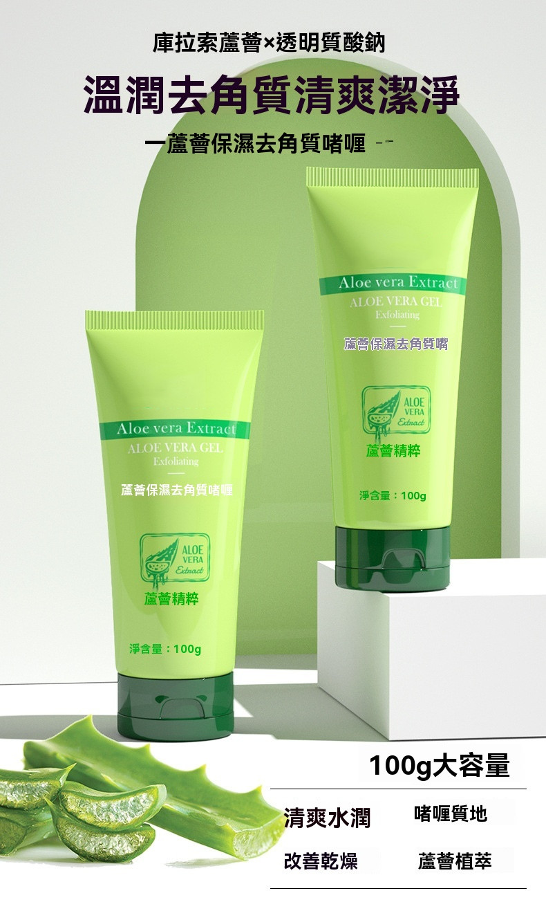 蘆薈去角質啫喱深層清潔麵部溫和去死皮臉部身體磨砂膏搓泥寶磨砂膏