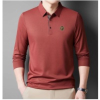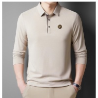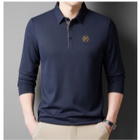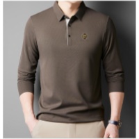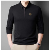 2025新款高档囂絲男士休闲时尚翻领商务POLO长袖 純色百搭顯氣質