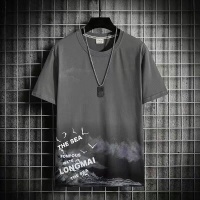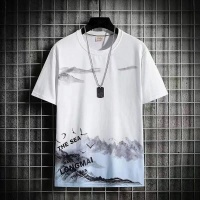 2025新款男士水墨國風燕鳥圖冰絲短袖T卹 休閒百搭 柔軟且富有光澤 保暖性能極佳 增添奢華感 夏日百搭