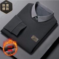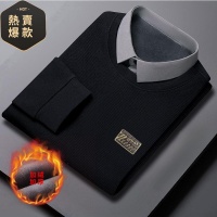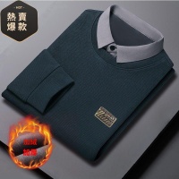 冬季新款加絨加厚圓領假兩件長袖t恤時尚保暖百搭針織打底衫