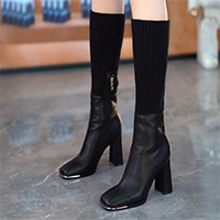 高跟百搭兩穿高筒襪靴,粗跟不累腳,方頭防踢設計,更高級針織皮質拼接,不挑腿型,時尚的同時不勒腿