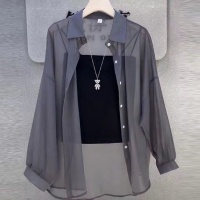 新款時尚百搭上衣珠光紗防曬衣女寬鬆襯衫 讓你穿上年輕十歲 立體版型 不挑身材不挑人 遮肉顯瘦~免燙抗可機洗 不起球不掉色