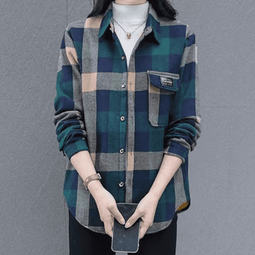 早秋新款格子襯衫 選低飽和度莫蘭迪格紋 不挑年齡不挑膚色 超顯温柔氣質