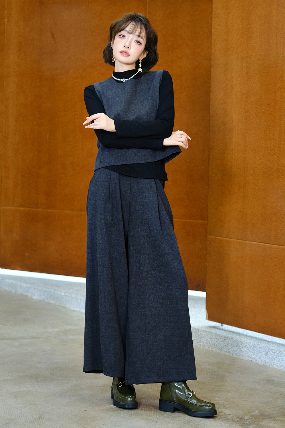 時尚圓領馬甲三件套 打底衫闊腿褲外配馬甲叠穿 显層次 單穿每件都能撐起氣場