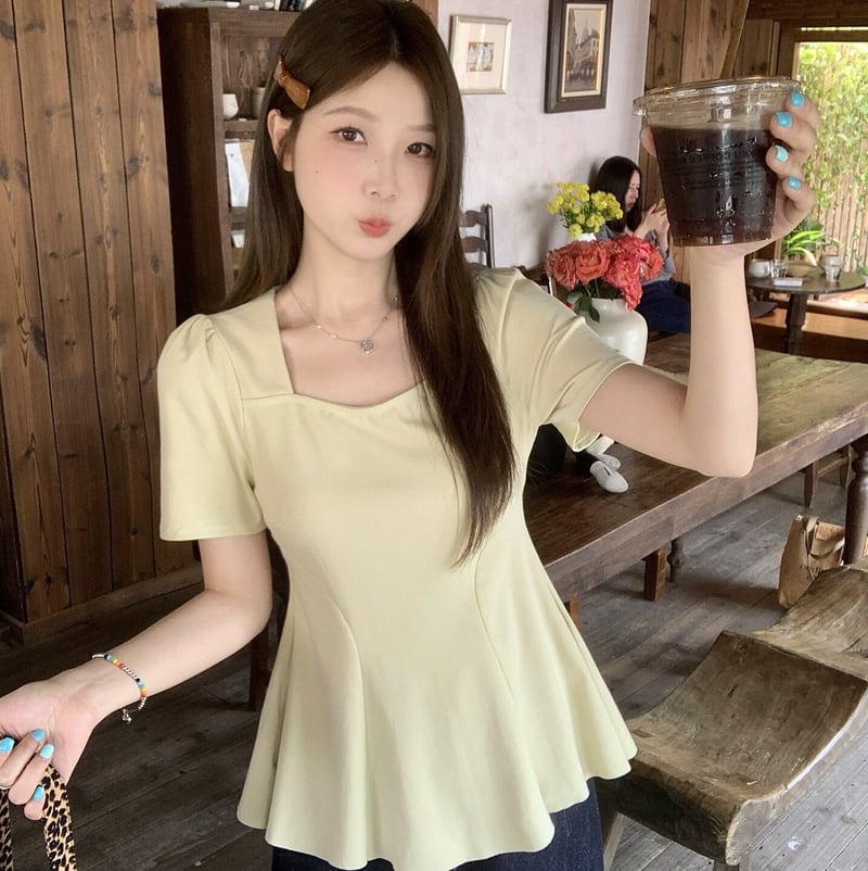夏季收腰遮肉顯瘦魚尾小上衣 超喜歡這件正肩收腰短袖 上身好遮肉顯瘦啊 微胖姐妹也可以放心穿