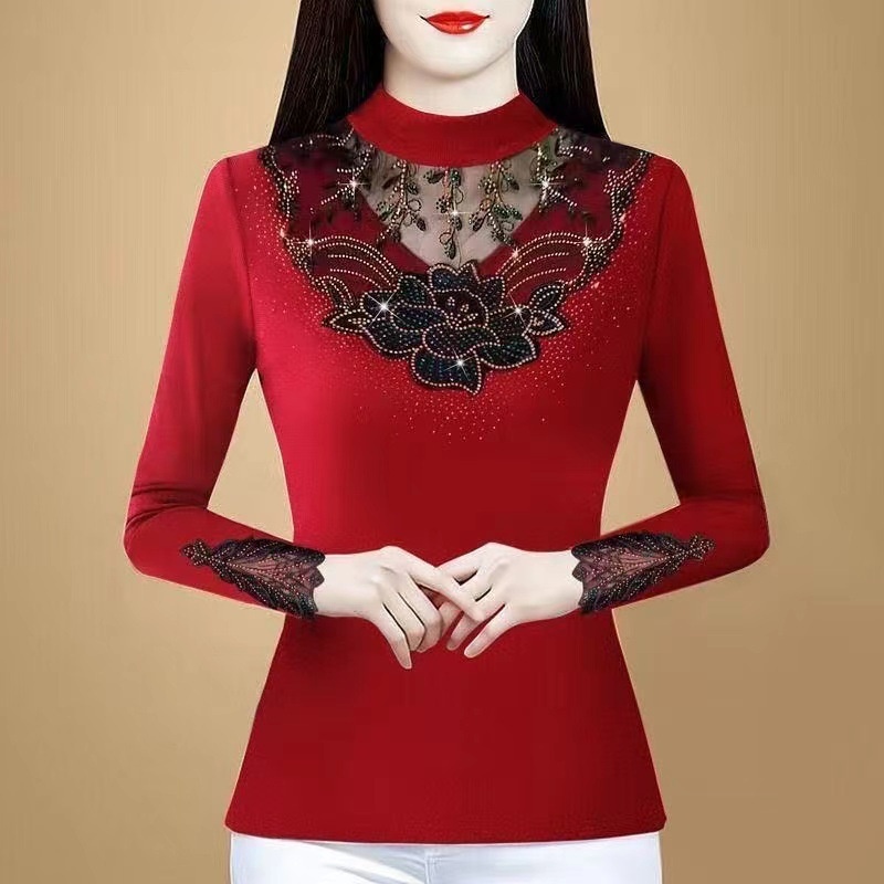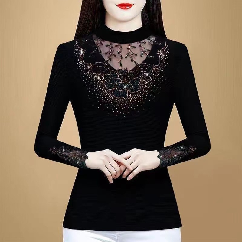 這件半高領顯瘦洋氣打底衫,以優質蠶絲製成,柔軟親膚宛如雲朵觸膚,蕾絲鑲鑽設計精緻大氣,讓您在各種場合都能綻放迷人風采,998破盤價